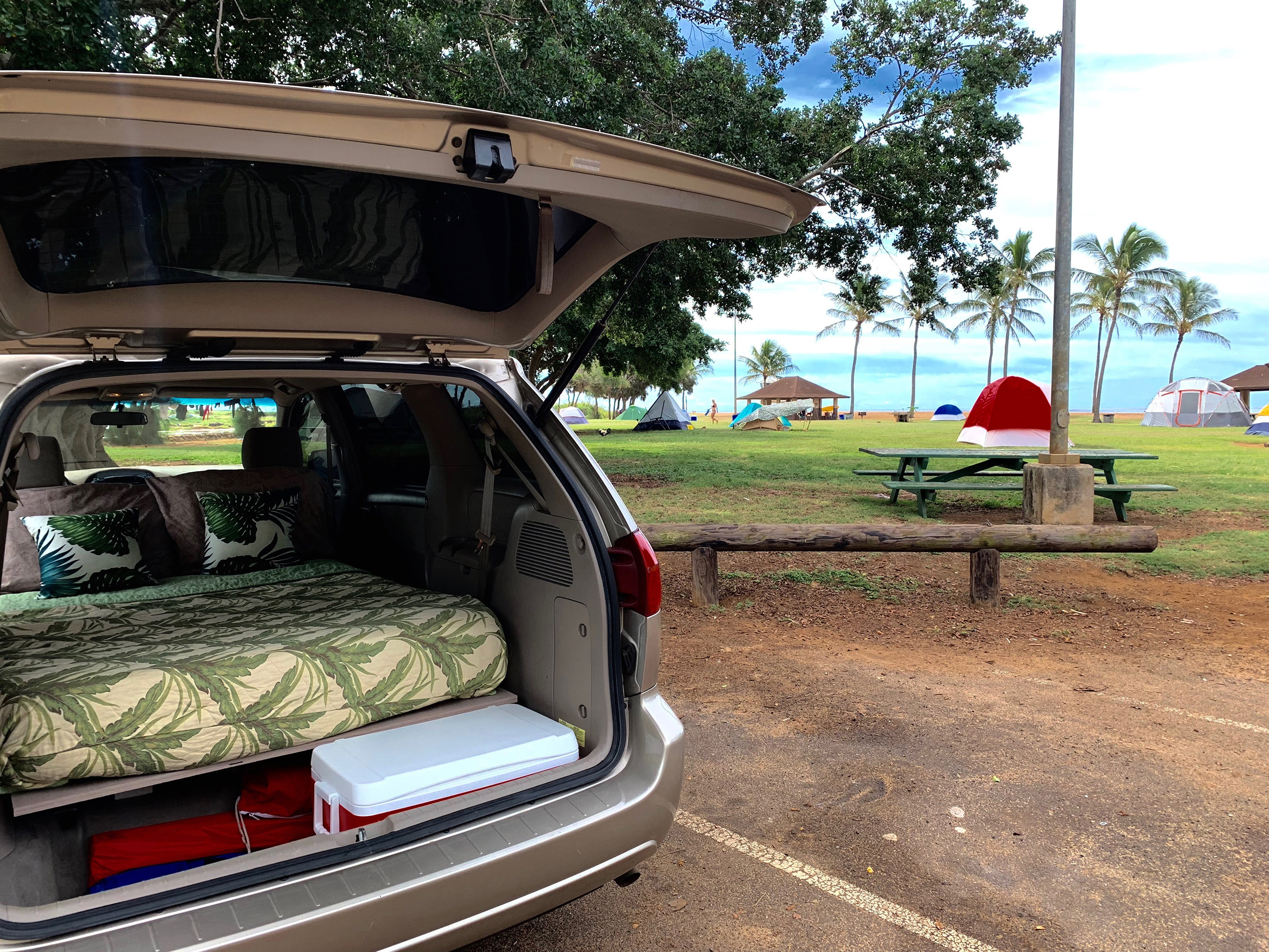 You cannot sleep inside a campervan, SUV, car, or rooftop tent here. Kauai County enforces this rule.