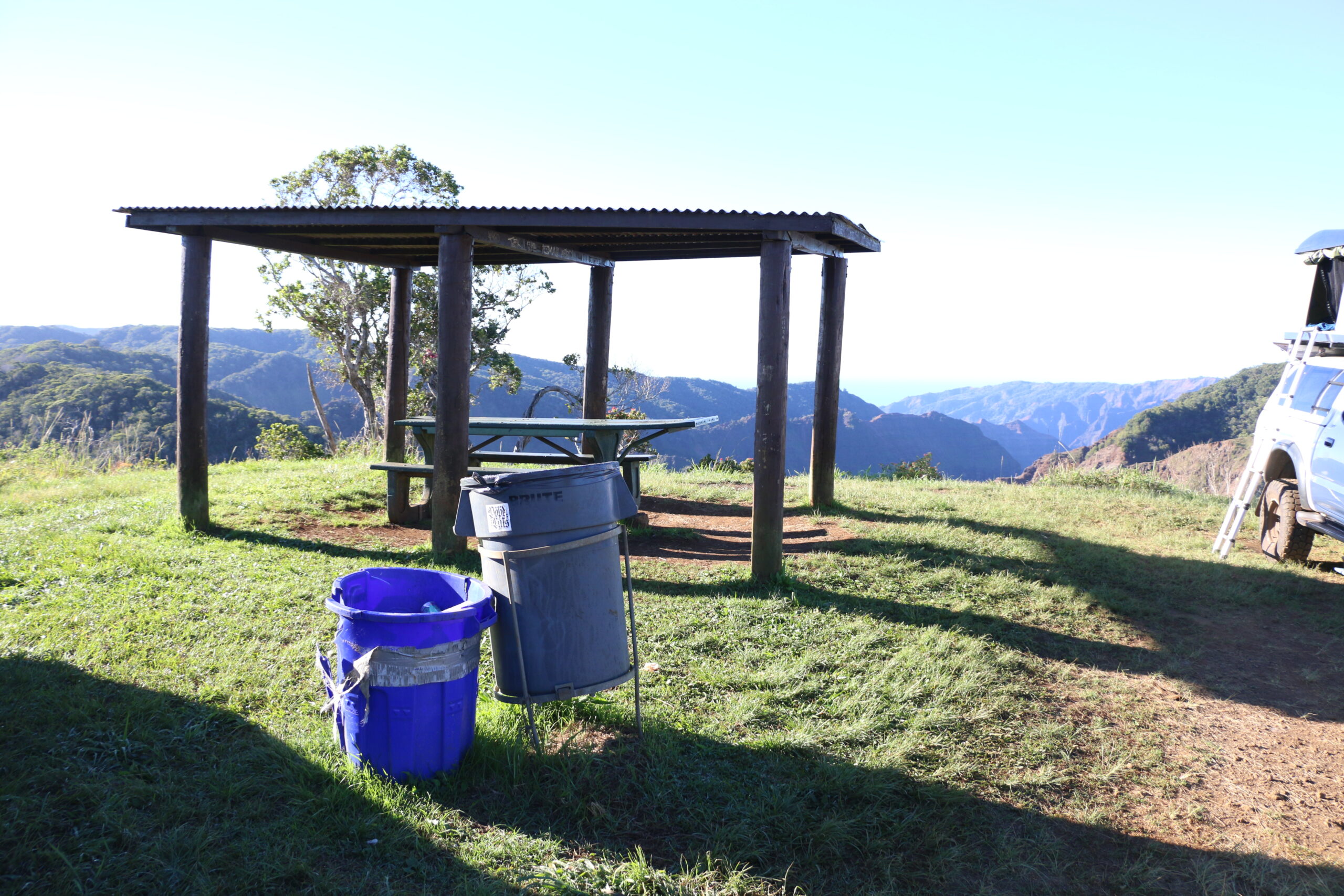When you get to 2.8 miles you’ll come to the Alaka’i picnic area. You want to go straight and to the left to head to the campground, or you can go right to visit the picnic area. It’s actually a nice lookout and I would recommend stopping to check it out. Although not an official campsite, I’ve seen people camp there before and it looked pretty nice.