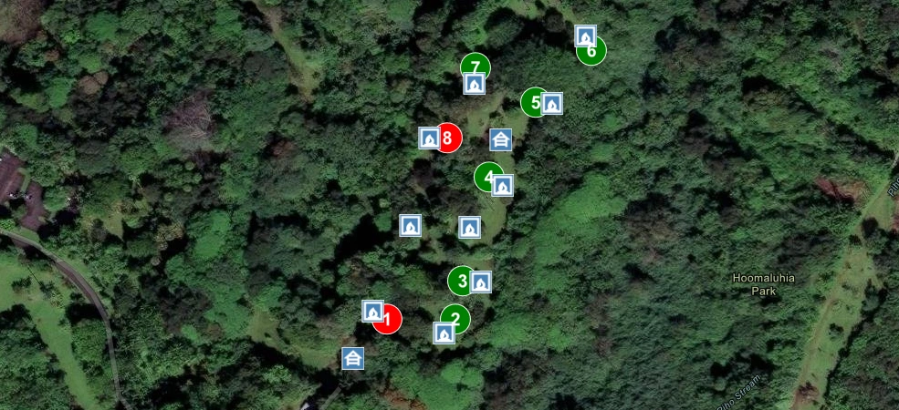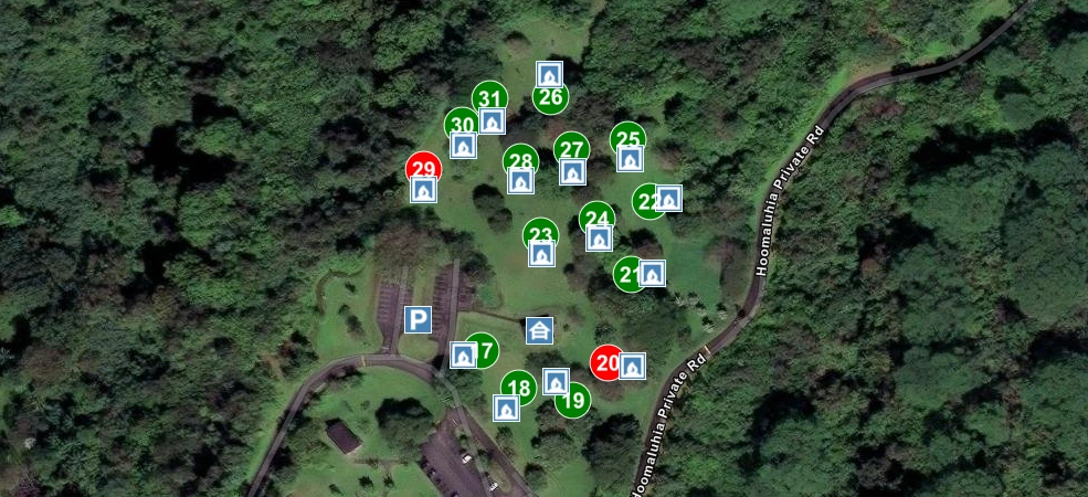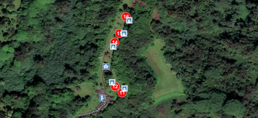 They are three camping areas inside the same botanical garden. Each one has its own campsites and layout, but they are all part of the same Ho’omaluhia camping area.